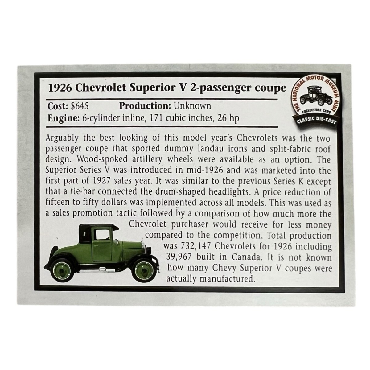 - Vintage 1926 Chevy Superior V Coupe Diecast Car Green Black 1:32 Classic Model