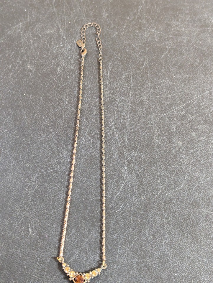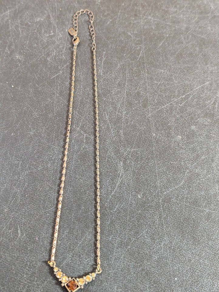 - Vintage 1928 Copper Tone Chevron Bar Pendant Necklace Rhinestone Jewelry
