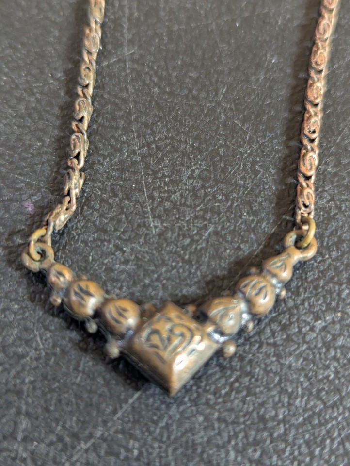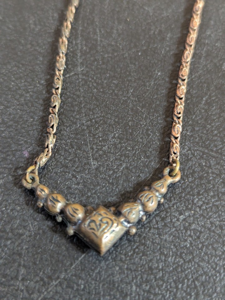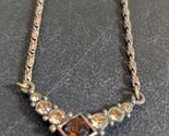 Vintage 1928 Copper Tone Chevron Bar Pendant Necklace Rhinestone Jewelry