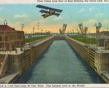 - Vintage 1940 Postcard Davis Lock Soo Michigan Longest Lock in the World Airplane