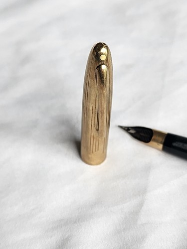 Sheaffer 14K tip fountain pen. Has a great weight and very pleasant in hand. Screw on cap.