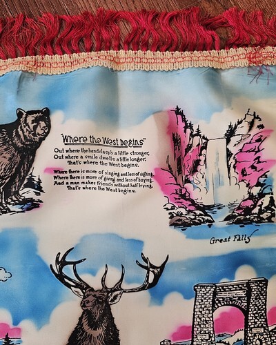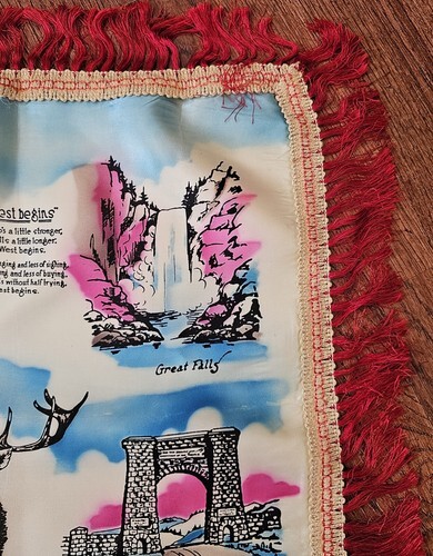 UP FOR SALE: Vintage 1940s-50s Yellowstone National Park Fringed Silk Souvenir Pillow Cover