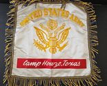 Vintage 1940s WWII Era Army Souvenir Silk Pillow Case Camp Howze Texas Blue Gold