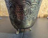 This vintage 1950's Dutch brass 3 foot planter features a unique fruit and leaves pattern on a bell-shaped design, adding a touch of retro charm to any space. Made in the Netherlands with an antique brass finish, this medium-sized planter in a classic gold color brings a touch of nostalgia to all occasions. Standing at 9.75 inches tall and 8.75 inches wide, this original piece from the 1950s is a perfect addition to any collection or decorative display.