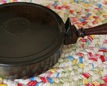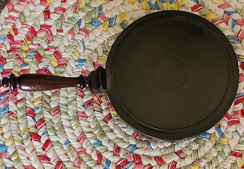 Measures approximately 9.75" wide (including handle) x 7" diameter x 1.5" tall (not including lid stop)