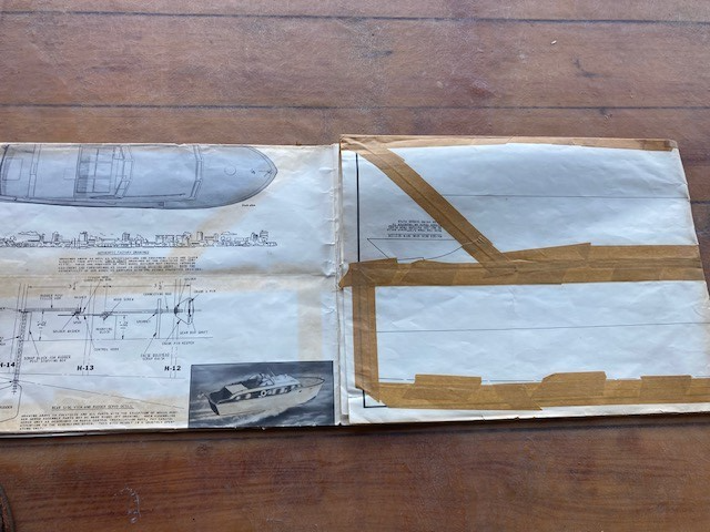 Vintage 1950's Sterling Chris Craft CORVETTE 48" RC Wooden Boat ( PLANS ) only Condition as shown. Complete. There is tape over folds on the skin patterns section. Please refer to images.