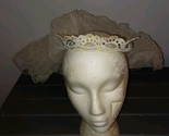 Vintage 1950s Unique Crown Tiara Wedding Bridal Headpiece White Beads with Veil