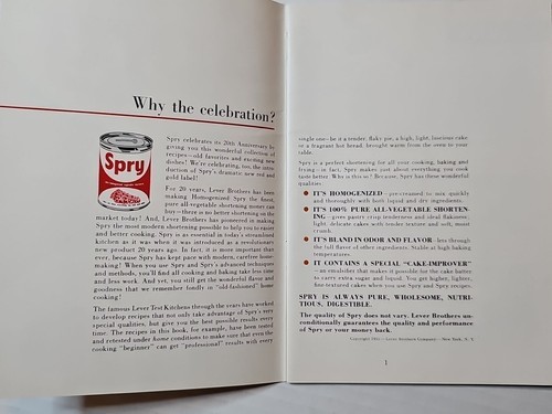 - Vintage 1955 Spry 20th Anniversary Cookbook Of Old and New Favorites Lever Bros