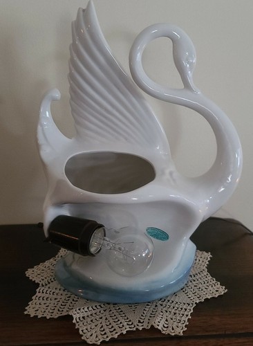 - Vintage 1959 ~ Maddux of California Lamp ~ White Swan Lamp ~ 9.25" x 12.25"