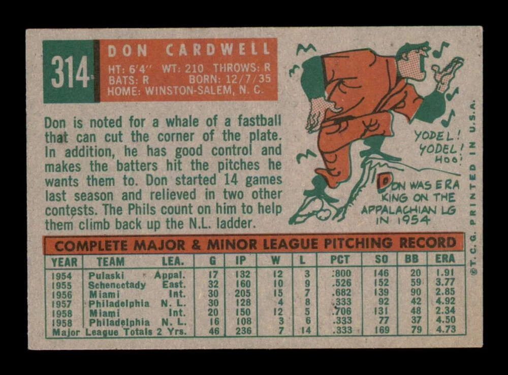 - Vintage 1959 Topps #314 Don Cardwell EX/EX+