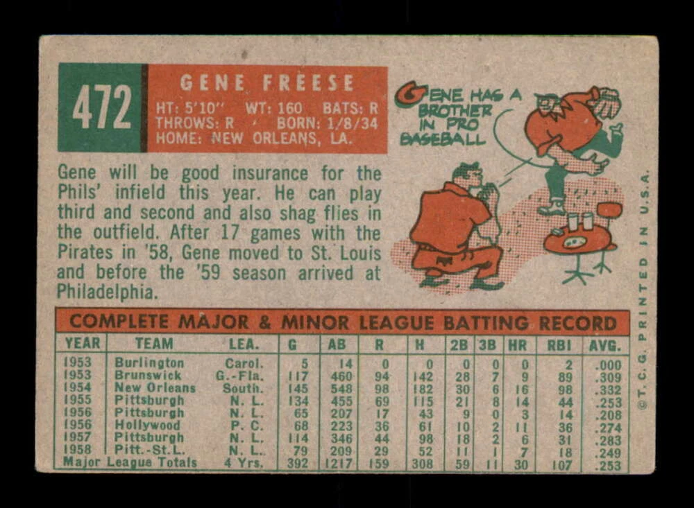 - Vintage 1959 Topps #472 Gene Freese VG/VGEX