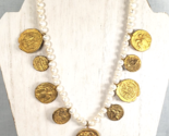 - Vintage 1960's Signed Gypsy Handmade Coin and Freshwater Pearl 17" Necklace