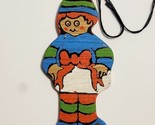 - Vintage 1960s Christmas Ornament Boy With Gift 4" Handmade Hand Painted Wood