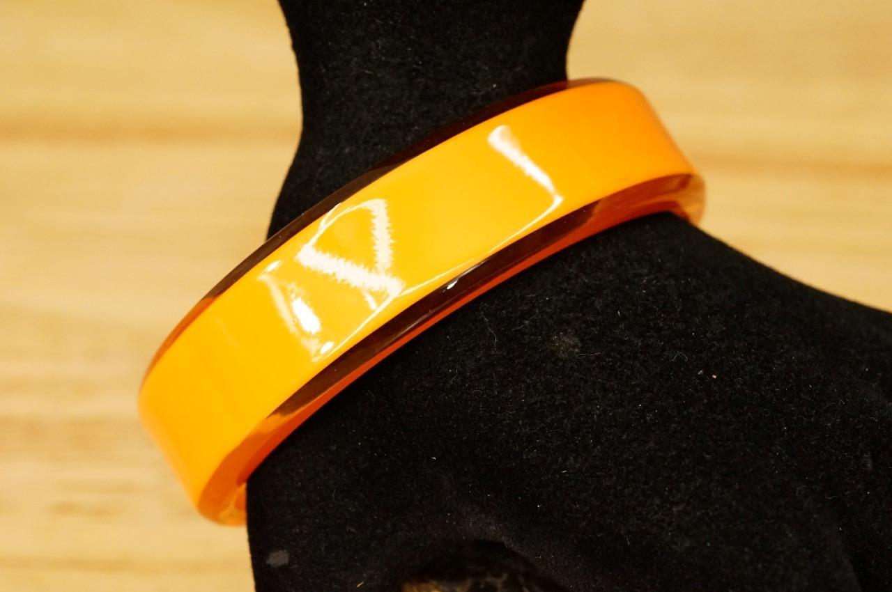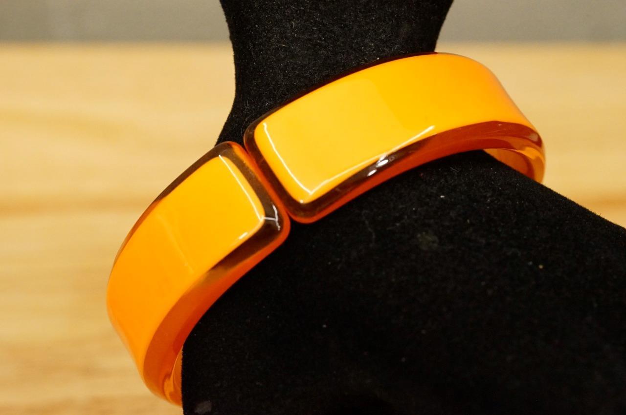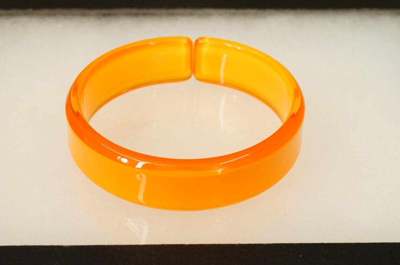 - Vintage 1960s Costume Jewelry Orange Cased Lucite Chunky Bangle Bracelet
