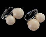 - Vintage 1960s Creamy Simulated Pearl Silver Tone Clip On Round Earrings Party