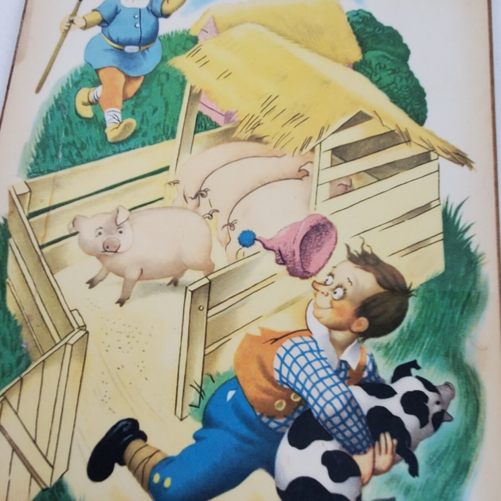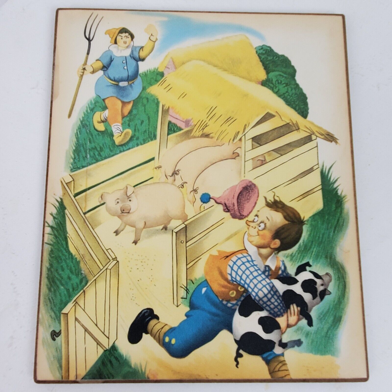 Vintage 1960s Nursery Rhyme Folk ART Print Laminated on Board 9.5x8 Inch (#01)