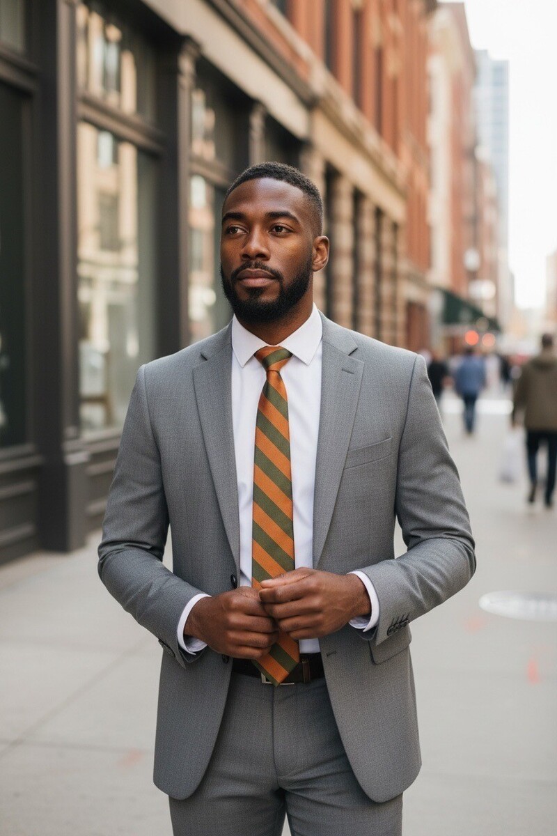- Vintage 1960s Terylene Striped Necktie Green & Orange Diagonal 53” x 3” – Englan