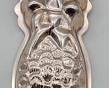Add retro charm to your kitchen with this preloved vintage 1963 pineapple-shaped Jello mold, crafted from durable copper-tone aluminum. The surface features a detailed raised pineapple design with textured leaves and cross-hatched body lines, giving it a bold tropical look. A small hanging loop is built into the top, allowing it to double as wall art or farmhouse kitchen decor. Originally used for gelatin desserts and molded salads, it now serves as a nostalgic statement piece for collectors of mid-century kitchenware, copper molds, or 1960s Americana. The back is stamped with 1963, confirming its authentic vintage origin.