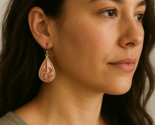 Crafted with care, these unbranded earrings reflect a time when attention to detail was paramount. The teardrop shape is complemented by the warm glow of the copper metal, creating a subtle, yet captivating accessory that is perfect for those who appreciate retro design with a bohemian twist.