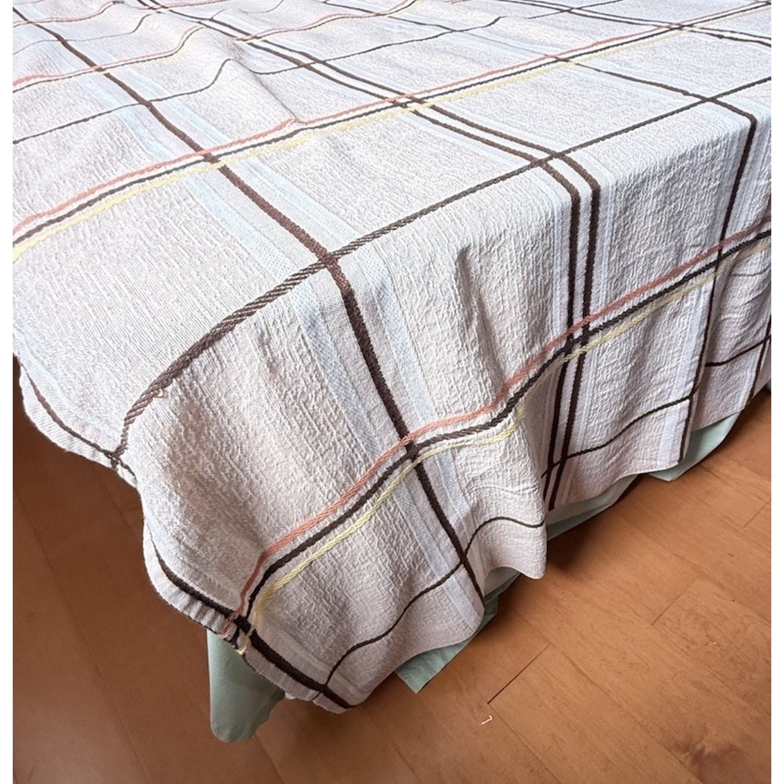 #VintageBedding #RetroBedspread #SearsToughcord #TwinBlanket #1970sStyle #StripedLinens #MCMDecor #DormDecor