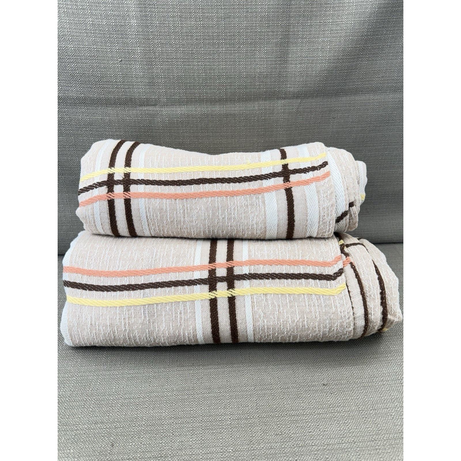 3221. Vintage 1970s 2 Sears Toughcord Twin Bedspread 76x110 Beige Brown Orange Stripe ?