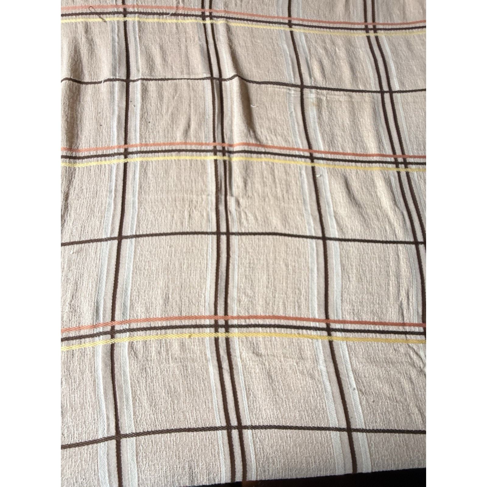 - Vintage 1970s Sears Toughcord Twin Bedspread 76x110 Beige Brown Orange Stripe