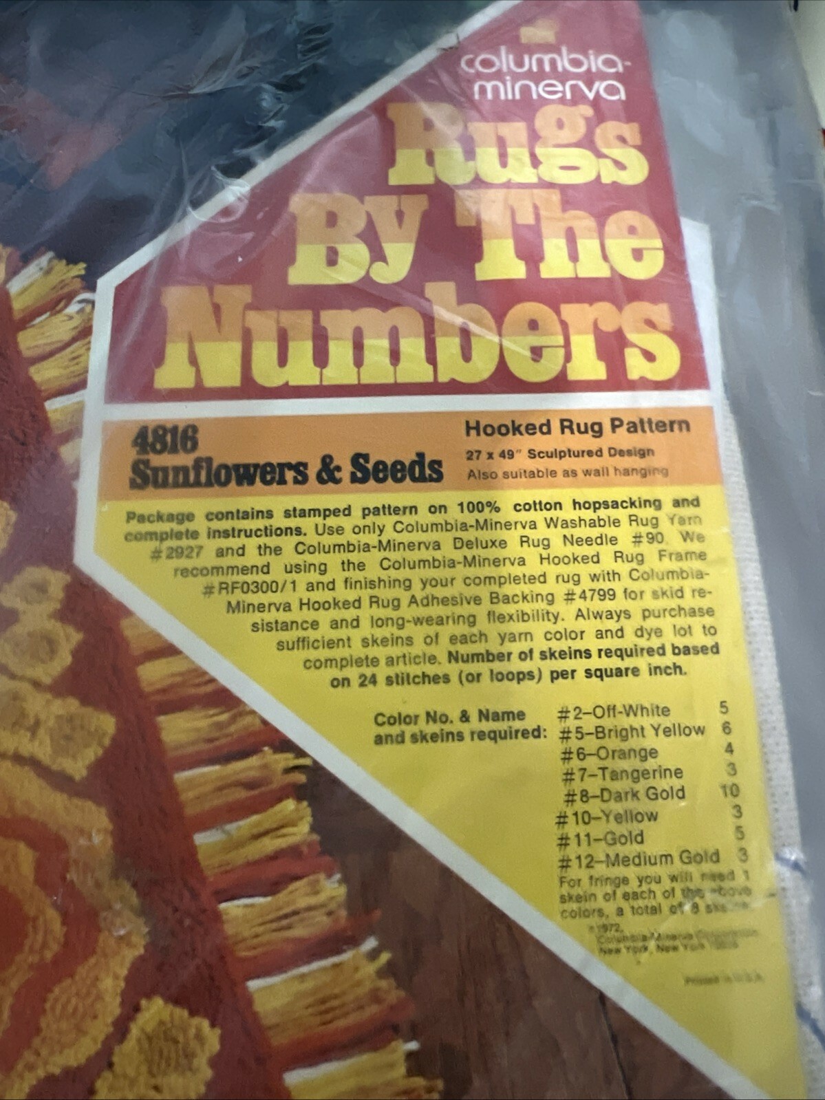 - Vintage 1972 Columbia Minerva Rugs By The Numbers Kit #4816 Sunflowers MCM
