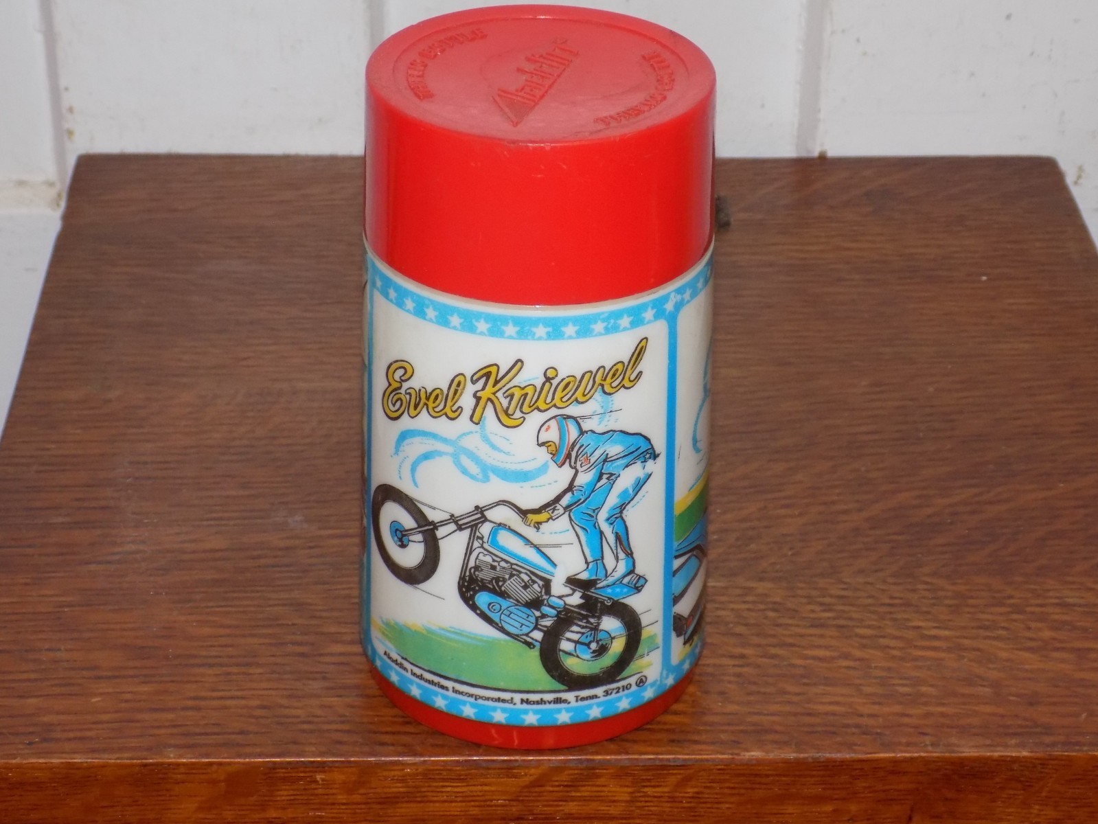 - Vintage 1974 Evel Knievel Plastic Thermos with Cap and Cup