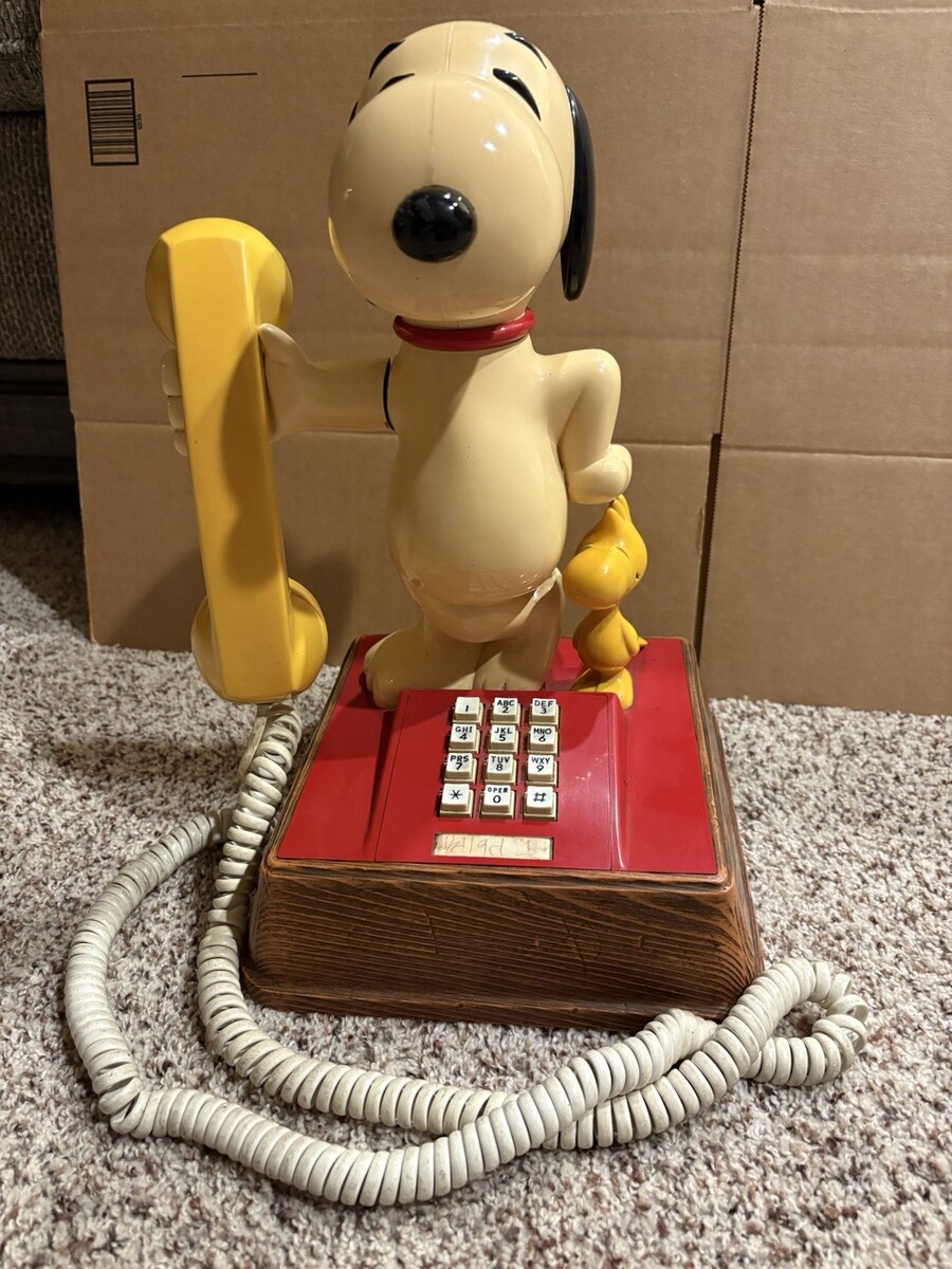 - Vintage 1976 The Snoopy & Woodstock Push Button Dial Phone 14" Tall x 8" x 8"