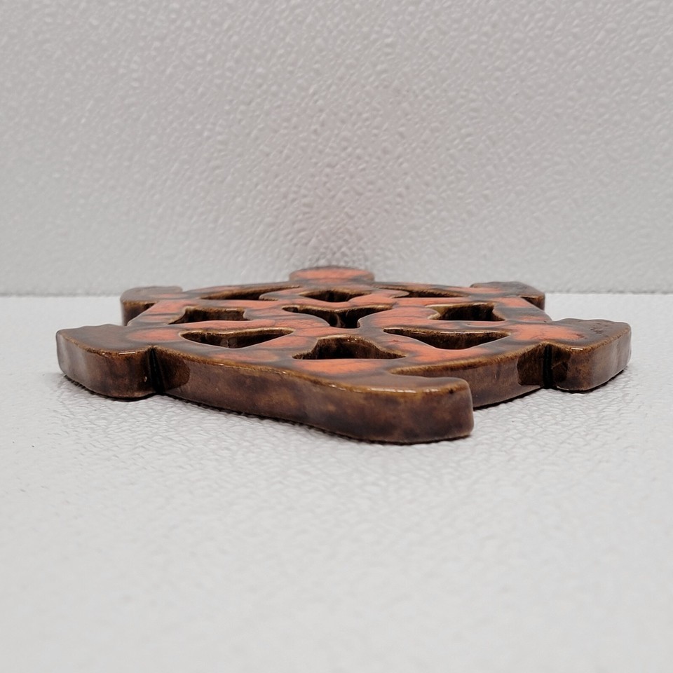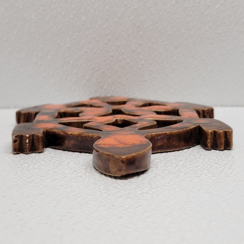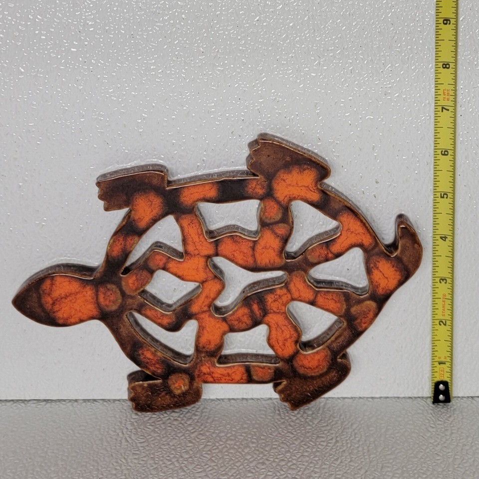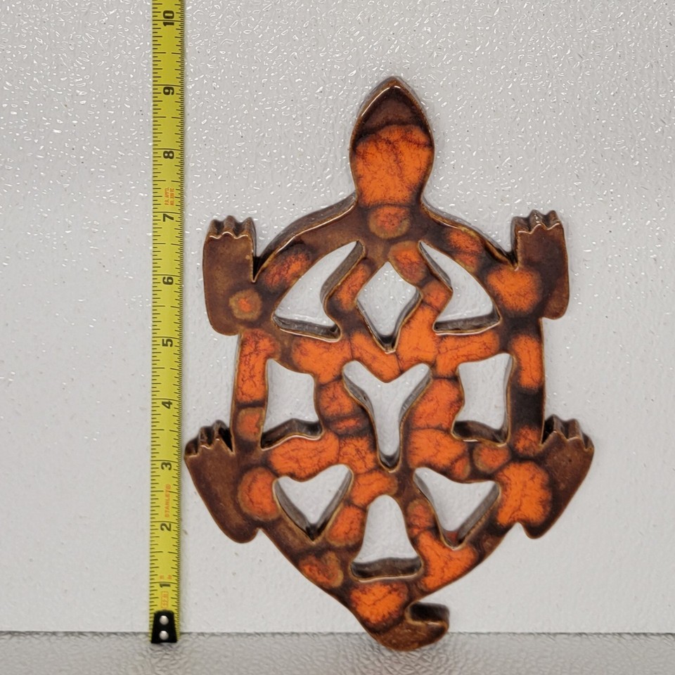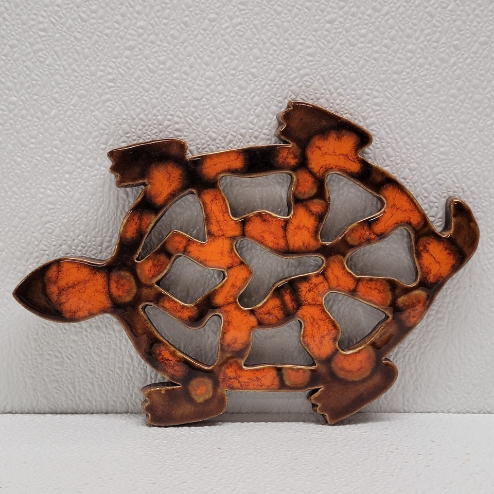 Vintage 1978 K. Davis Ceramic Turtle Decor Brown Orange. Images show actual item that will ship.