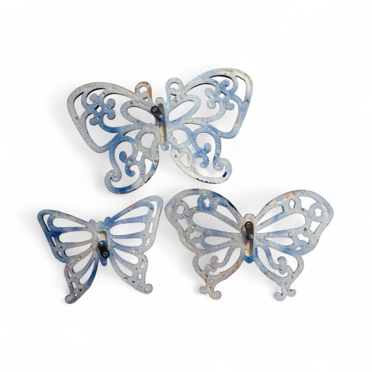 - Vintage 1978 Set Of 3 Glitter Blue Homco Butterfly Wall Plaques USA