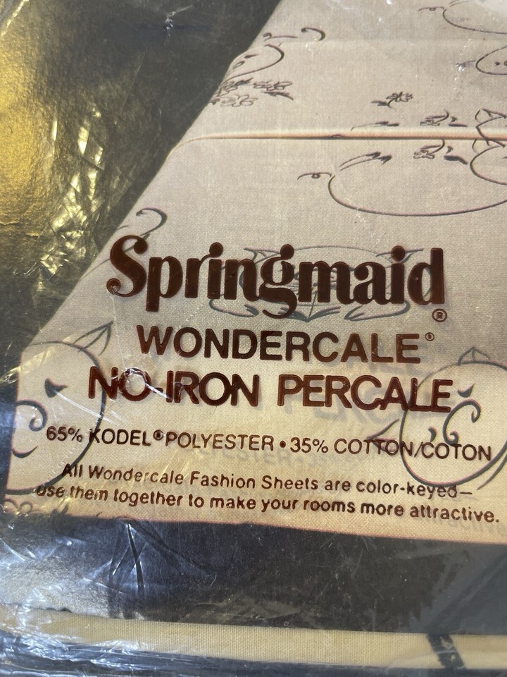 This vintage 1978 Sprindmaid pig FEELIN GOOD Alex West 1 Twin Flat Sheet is a must-have addition to your bedding collection. Made of a soft cotton blend material, this rectangular sheet is perfect for a cozy night in. The brown color and pig pattern add a touch of whimsy to your bedroom decor.