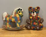 Vintage 1979 Foam Craft Nursery Teddy Bear And Rocking Horse Wall Hanging.