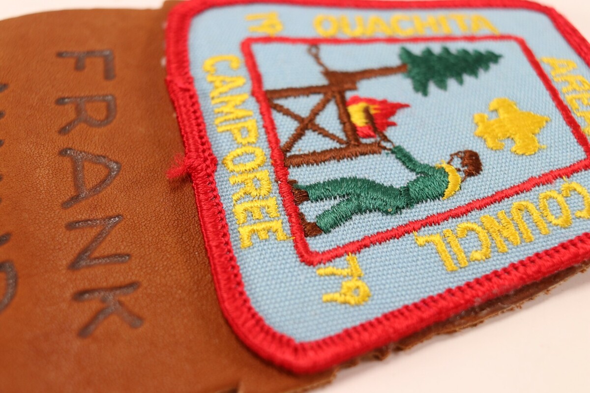 - Vintage 1979 Ouachita Camporee w/ Leather Name Boy Scouts America BSA Camp Patch