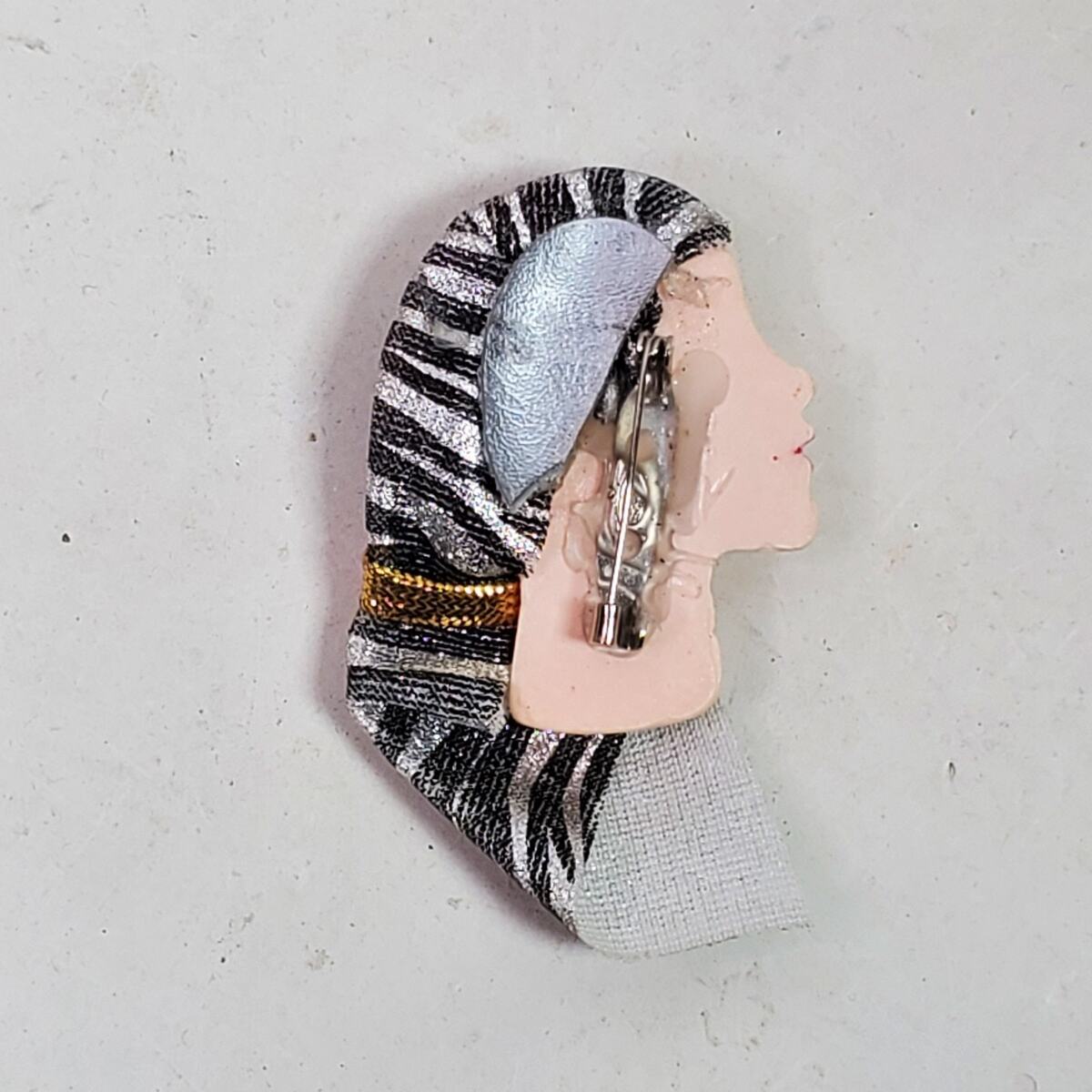 Vintage 1980s Gypsy Head Brooch Pin 2.5 Inch Total Length Including Head Wrap