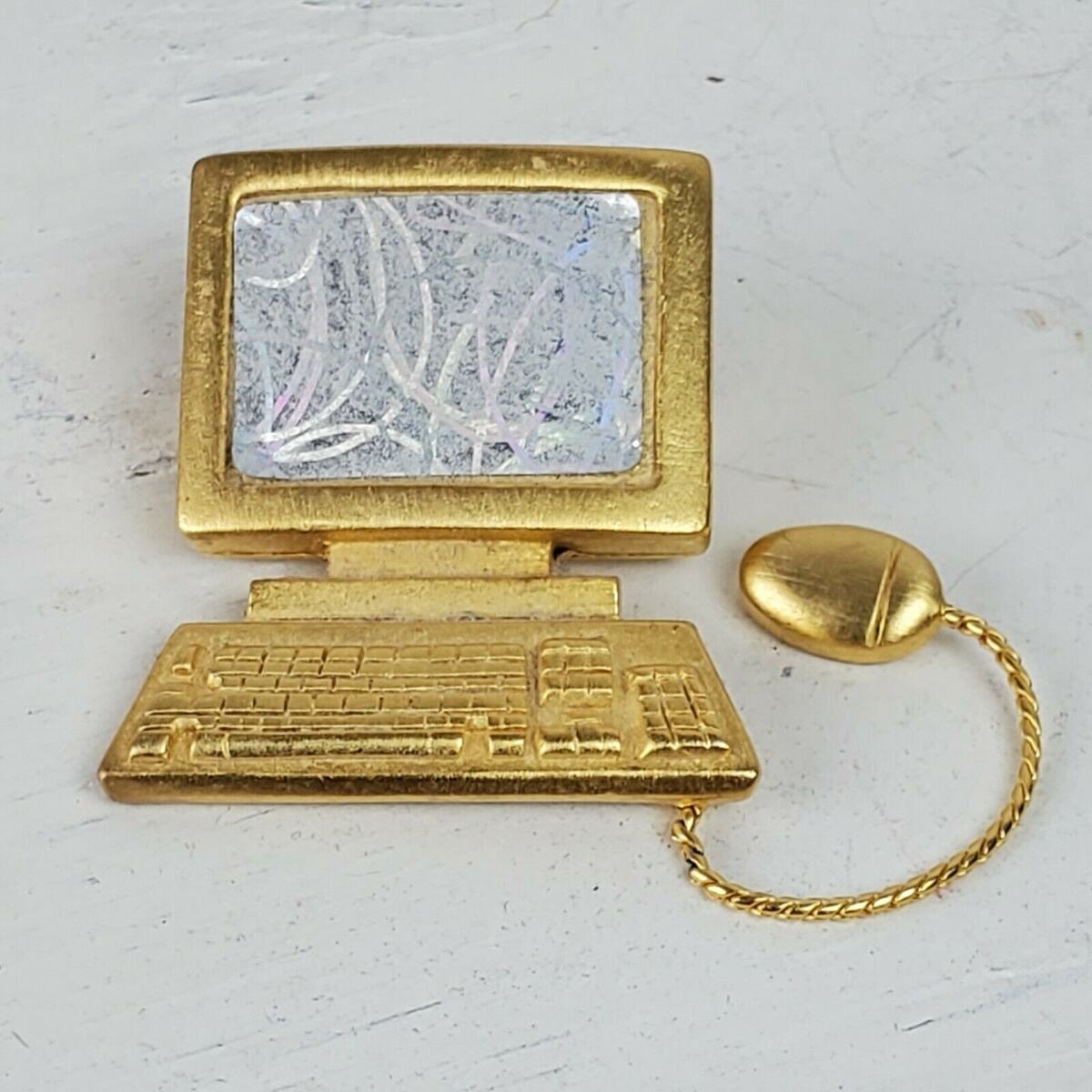 - Vintage 1980s PC Computer w/ Mouse Estate Brooch Pin 1.25"