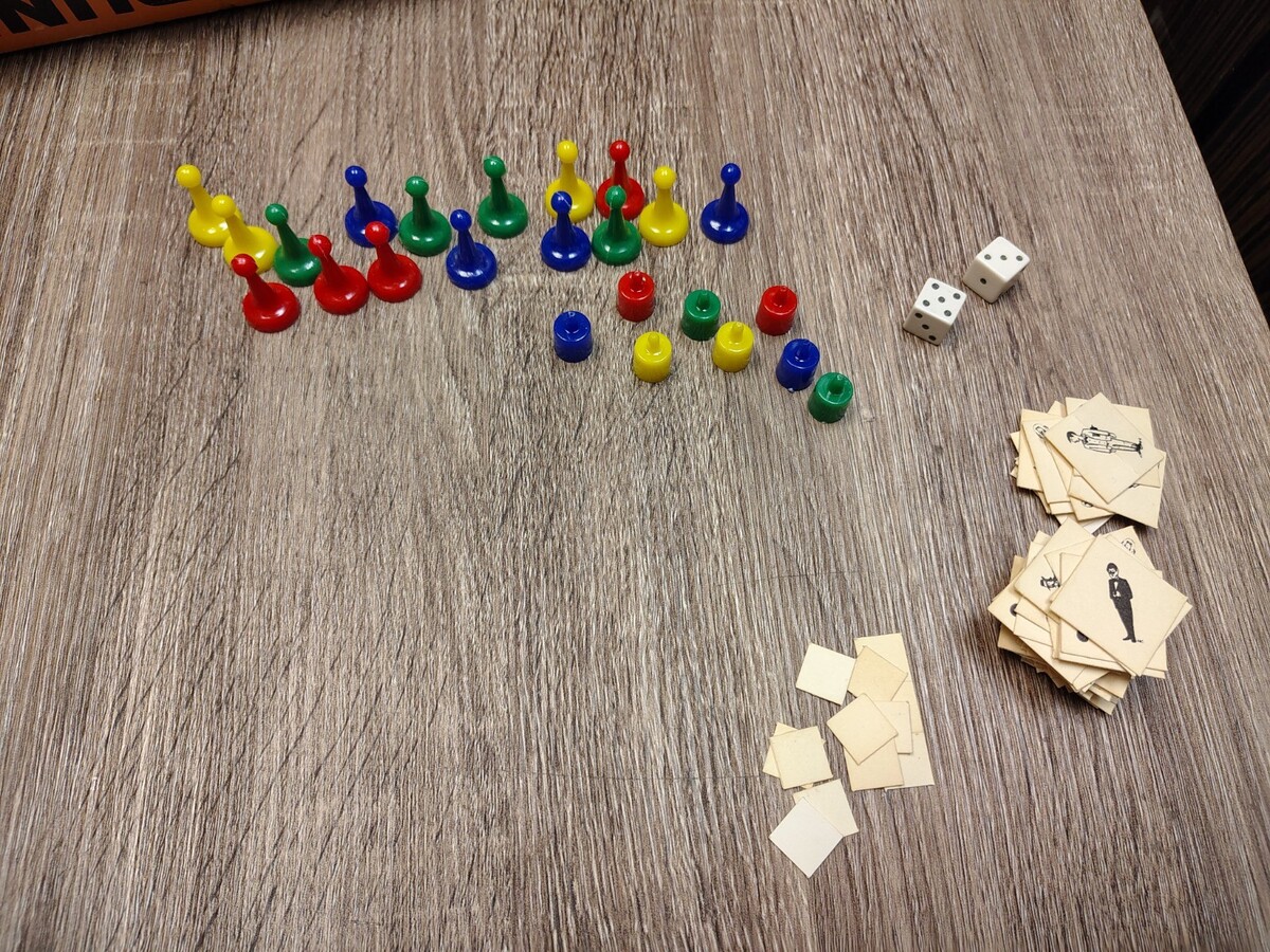 ? Four color sets of plastic pawns (red, blue, green, yellow) ?