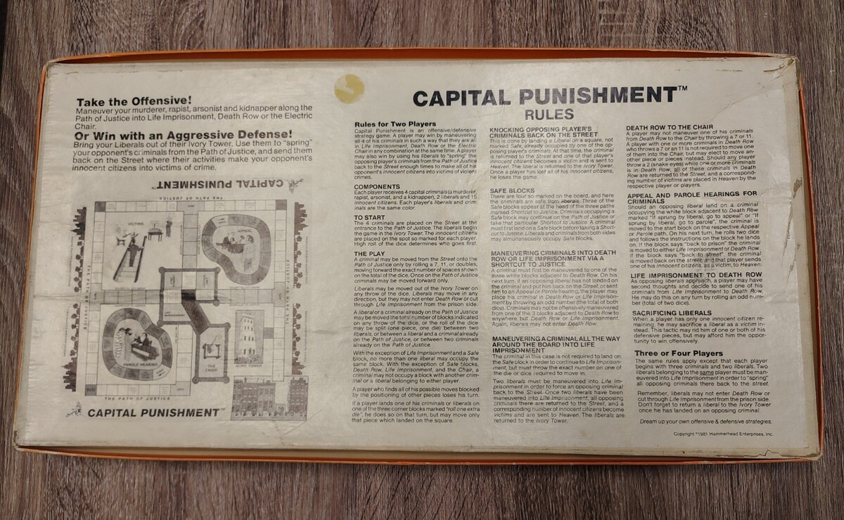 capital punishment board game 1981, hammerhead enterprises, rare oop boardgame,