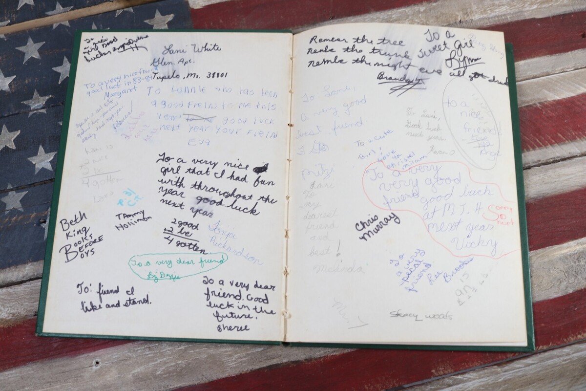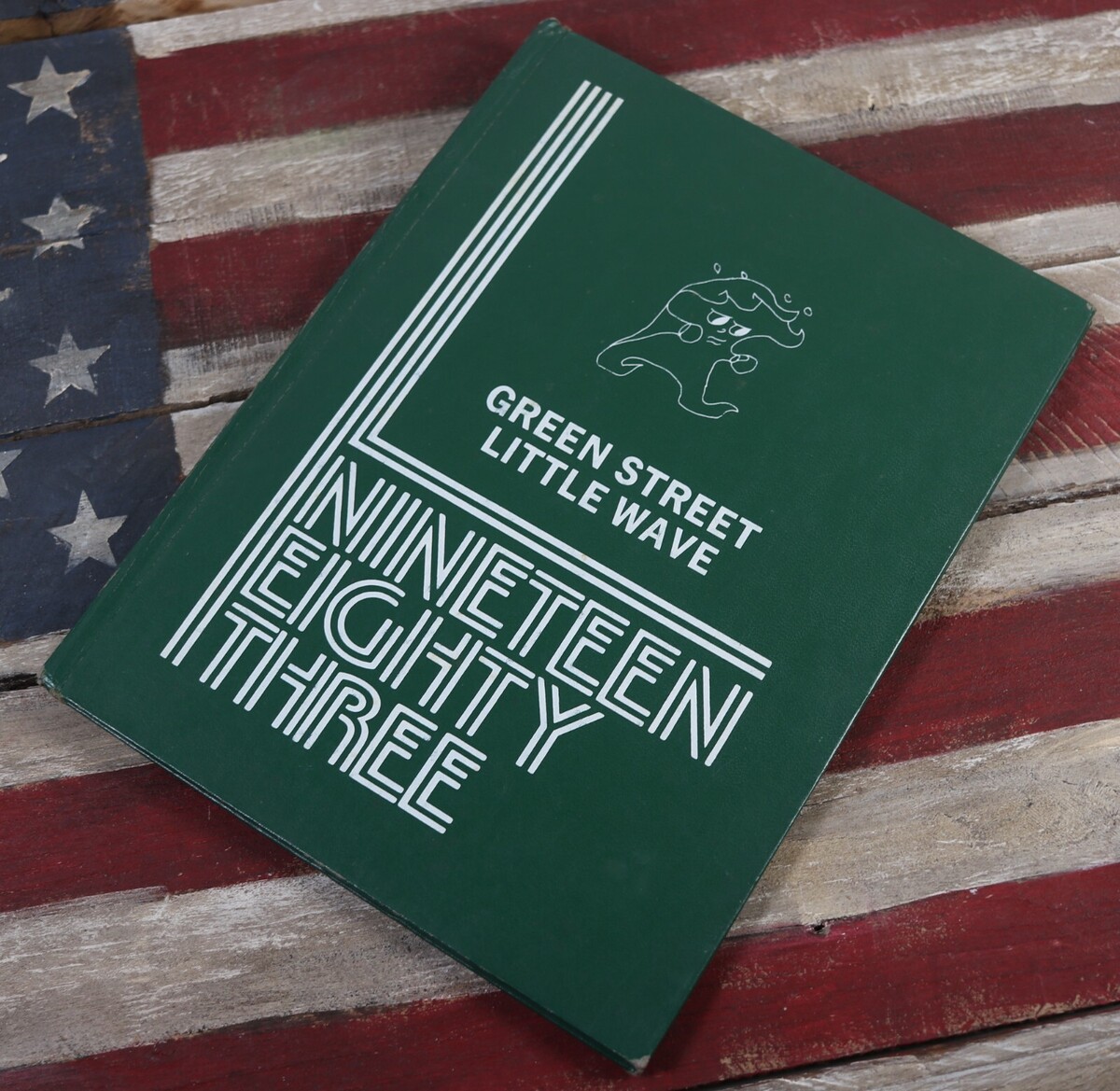 The product is a vintage 1983 yearbook from Green Street Elementary School in Brattleboro, Vermont. The yearbook is signed, adding a personal touch to this historical memorabilia collectible. This item provides a glimpse into the past and offers a unique piece of educational history for collectors or former students of the school.
