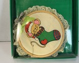 Vintage 1985 Giftco Heart Warmers Wood & Cloth Christmas Ornament Mouse Stocking