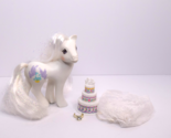 Vintage 1989 My Little Pony MLP Pony Bride Figure w/ Ring, Veil, & Cake