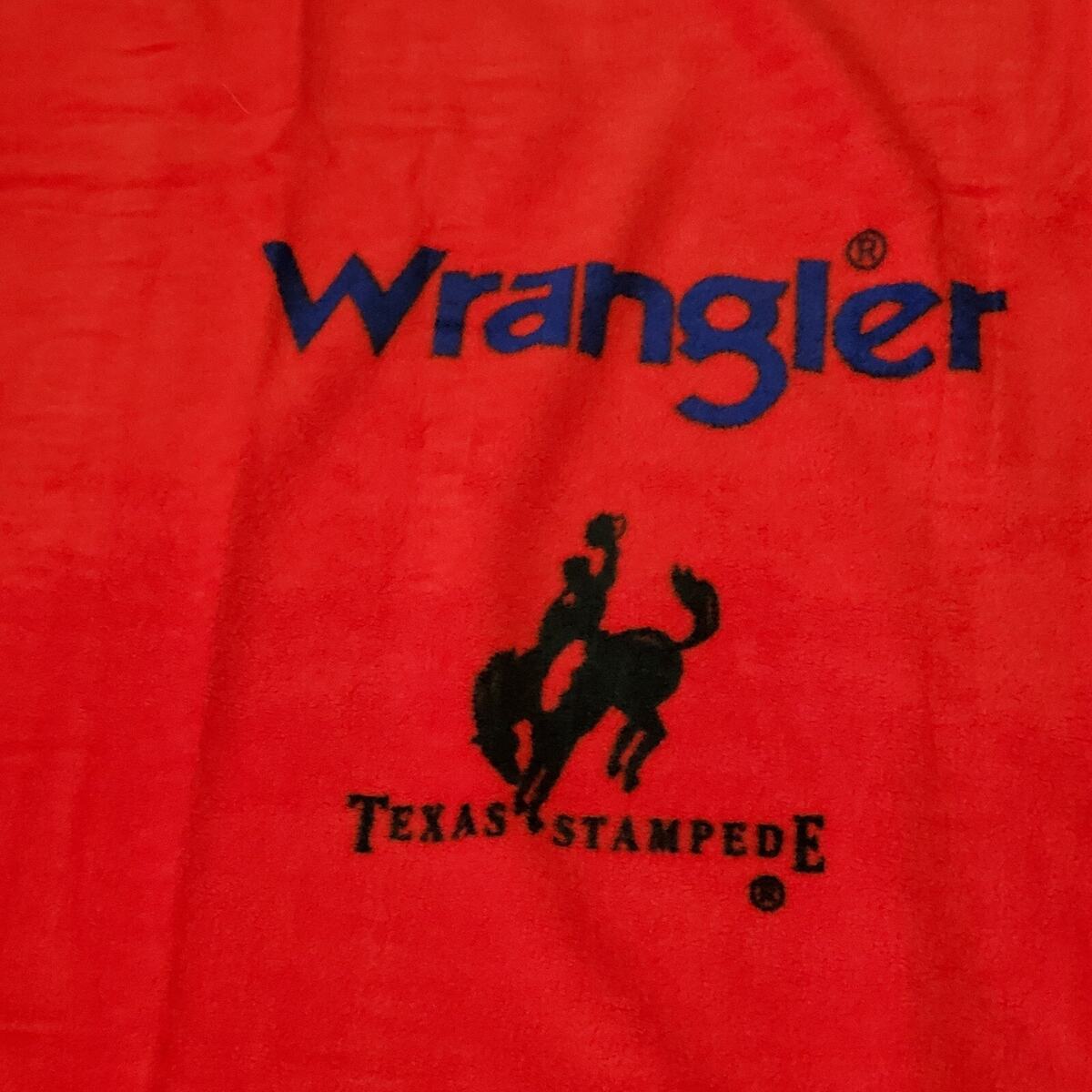 - Vintage 1990s NEW Wrangler Texas Stampede Stadium Blanket Red Blue