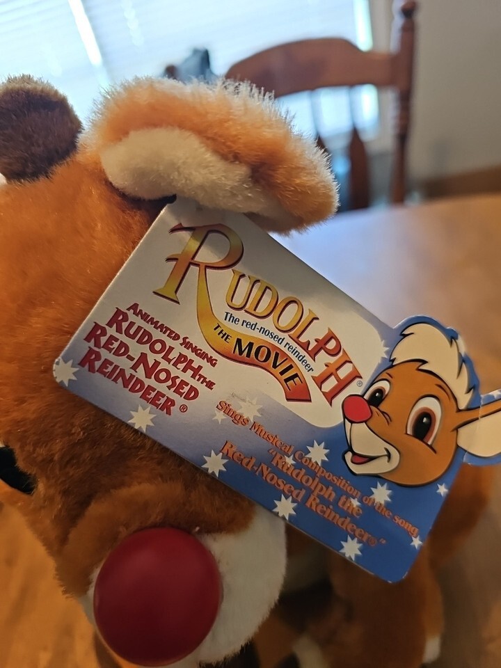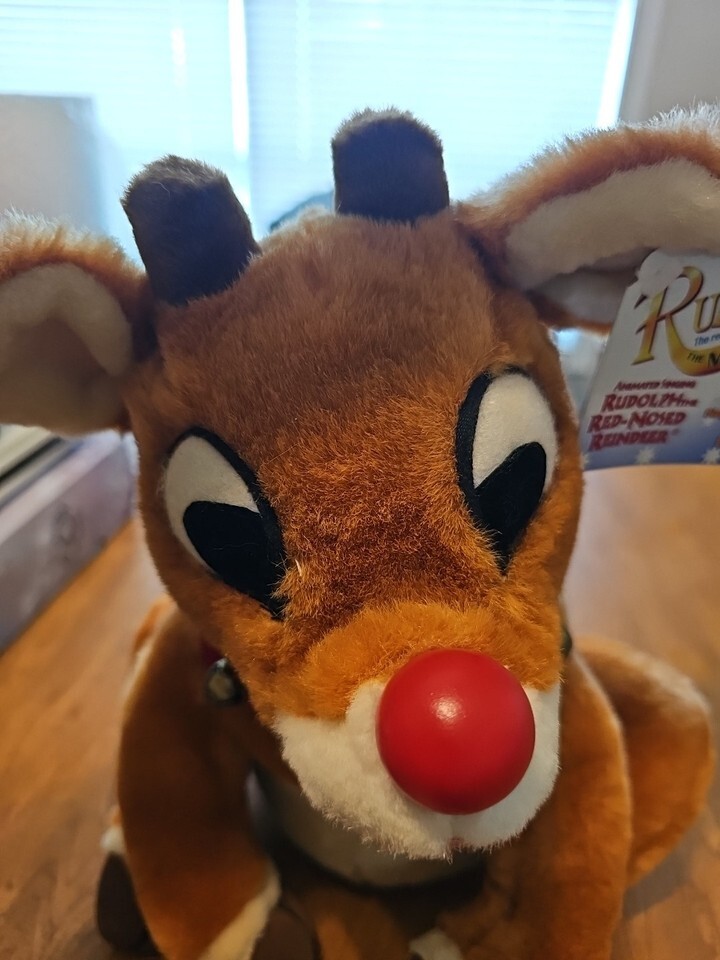 Vintage 1998 Gemmy Rudolph the Red Nosed Reindeer Singing Light Up Nose W/tag