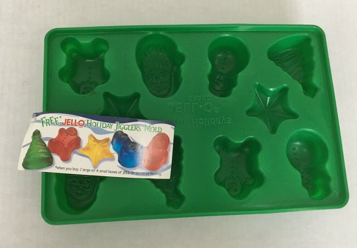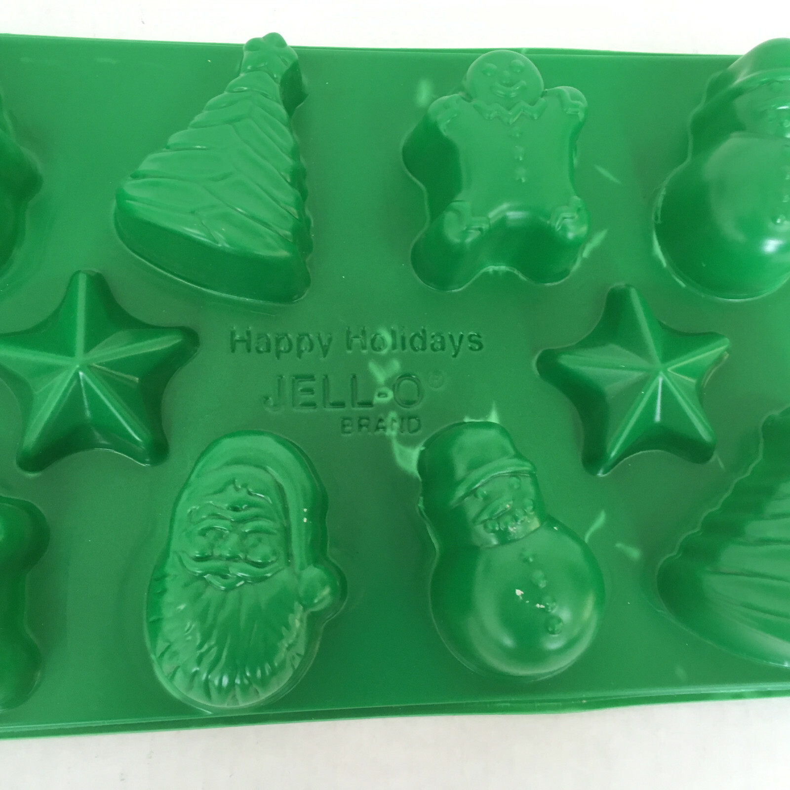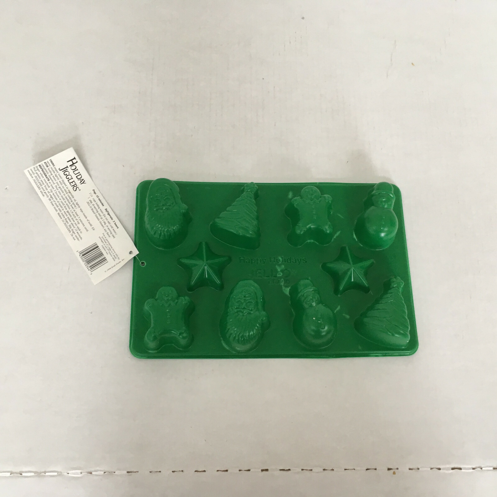 - Vintage 1998 jello holdiay jigglers mold green plastic santa snowman tree star