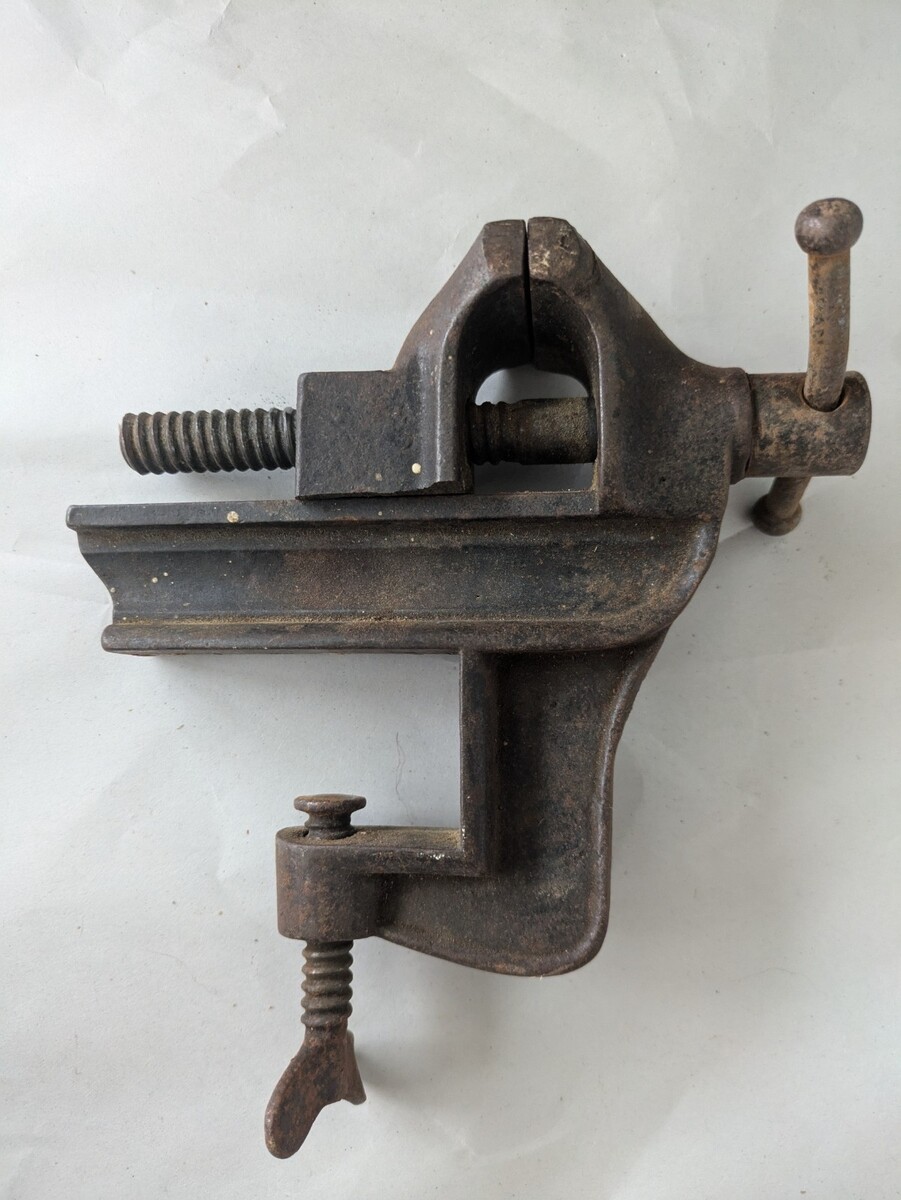 The Vintage 2 Inch Jaws Table Clamp Vise Anvil is a small, American-made tool perfect for metalworking and manufacturing projects. This table clamp vise anvil features a 2-inch jaw size, making it ideal for holding small objects securely in place while working on them. Its compact size and sturdy construction make it a versatile tool for professionals and hobbyists alike.