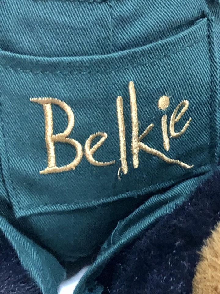 - Vintage 2002 BELKIE TEDDY BEAR Overalls Red Shirt CHRISTMAS Plush Stuffed Animal