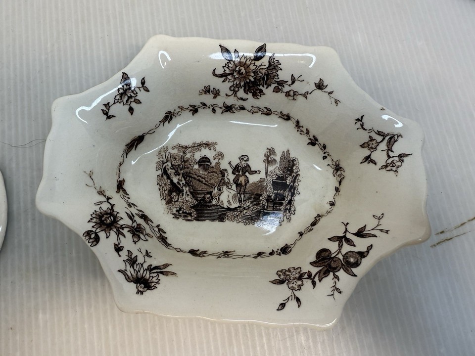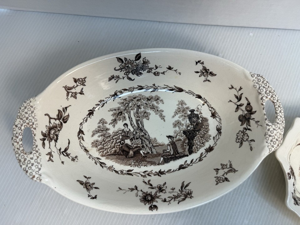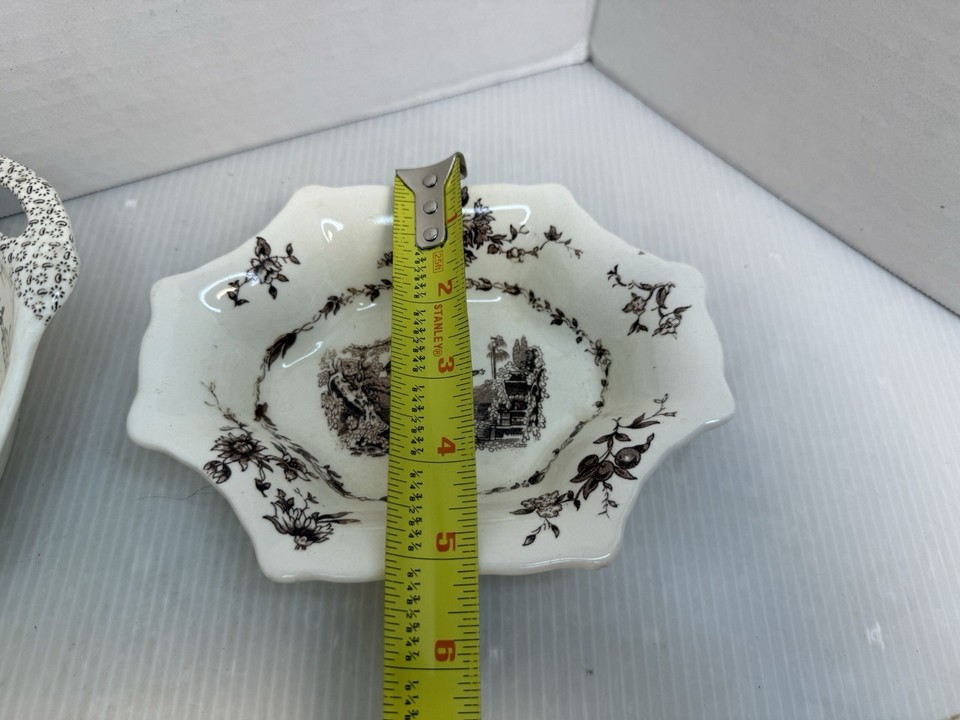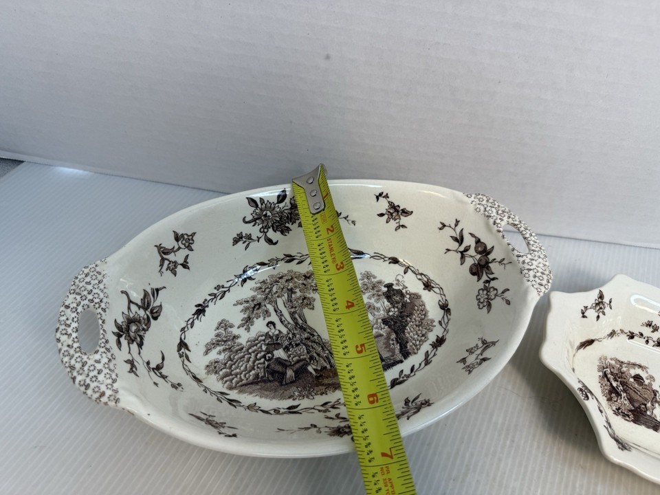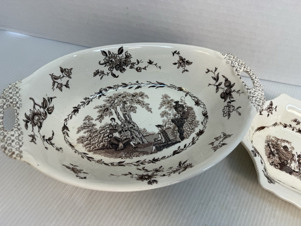- Vintage 2pc Lot Mason’s Watteau Candy Dish Made In England Brown Transferware