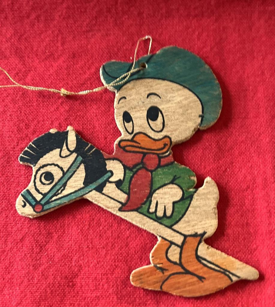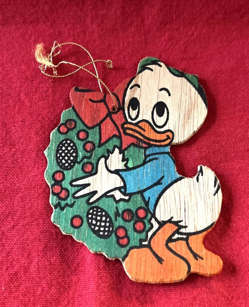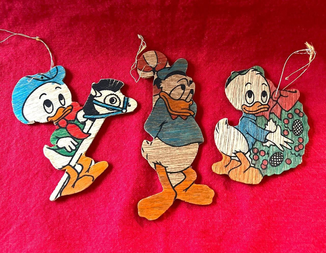 - Vintage 3 Handcrafted Painted Wood Ornaments Donald Duck + 2 Nephews
