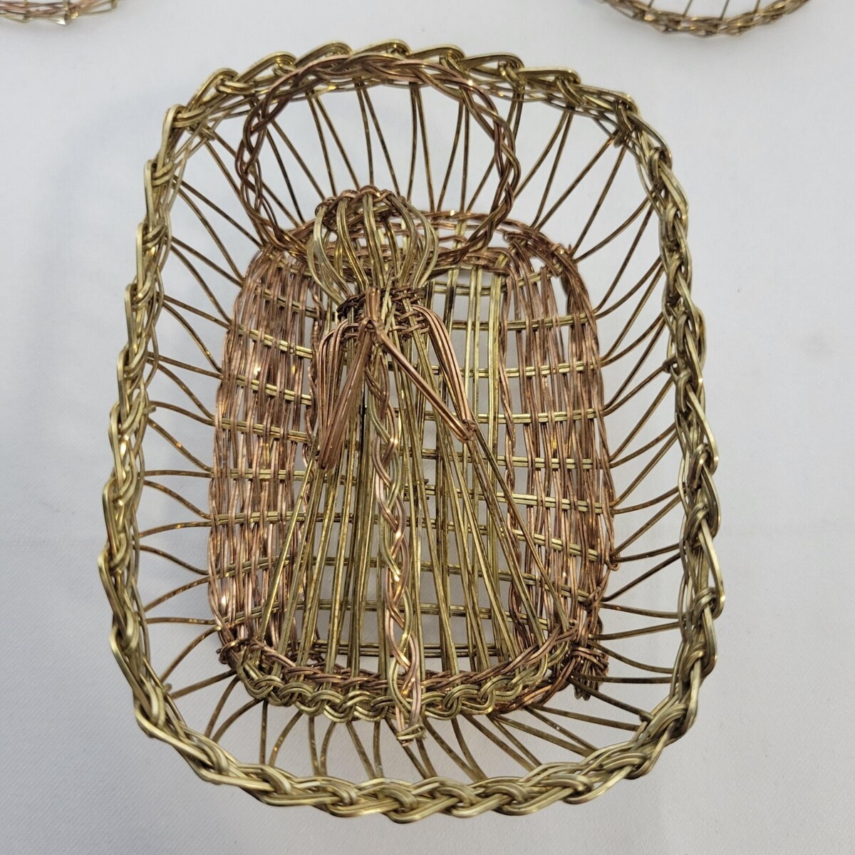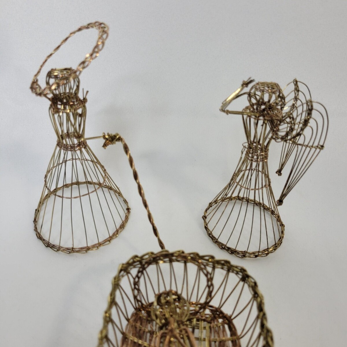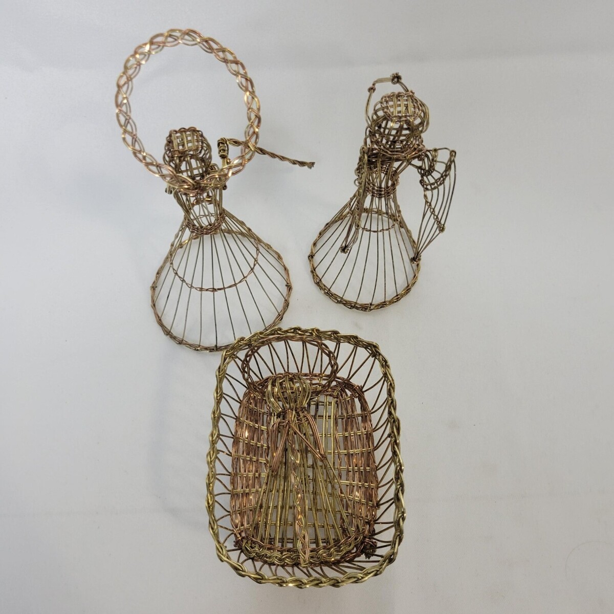 - Vintage 3 Piece French Gold Wire Nativity Angels Jesus Holiday Set Brass Wire