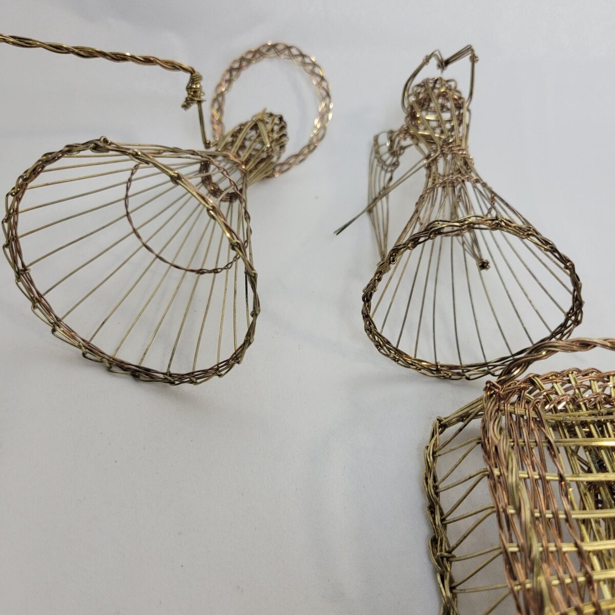 Vintage 3 Piece French Gold Wire Nativity Angels Jesus Holiday Set Brass Wire